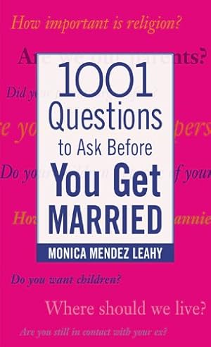 There's nothing wrong with starter jobs and starter homes, but starter marriages? Relationship expert Monica Mendez Leahy is on a mission to help readers make their marriage last. Her 1,001 Questions to Ask Before You Get Married offers a reality check for couples on the marriage path, helping them realize how much they have yet to discover about their partner's nature, thought processes, lifestyle, and marital expectations.