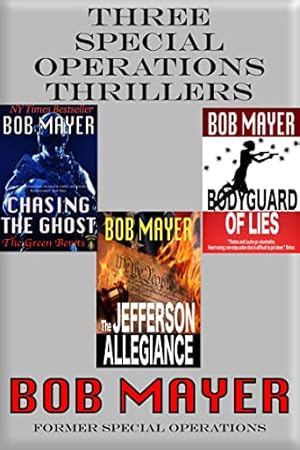 Three great reads from NY Times Bestselling Author and Former Green Beret Bob Mayer:THE JEFFERSON ALLEGIANCE #2 National Bestseller #1 Amazon ThrillerThe 4th of July 1826. As Thomas Jefferson lies dying, he gives his part of his Jefferson Cipher to Edgar Allen Poe, with instructions to take the disks to West Point. In Massachusetts, John Adams entrusts his part of the Cipher to Colonel Thayer, the superintendent of the Military Academy. As Thayer rides away, Adams utters his final words: "Thomas Jefferson survives."In the present, Green Beret Paul Ducharme has been recalled from Afghanistan after the 'accidental' death of his best friend, the son of one of the Philosophers. While Ducharme is visiting his friend's gravesite in Arlington, an old man is executed by a member from the Society of Cincinnati know as the Surgeon, who is seeking to gather all the pieces of the cipher. In a nearby restaurant, former CIA and now Curator at Monticello, Evie Tolliver, waits anxiously for her mentor to arrive, but he's killed by the same assassin at the Zero Milestone. His heart and the Philosopher's head are displayed as a grisly message on top of the stone, echoing Jefferson's famous head-heart letter.Ducharme and Tolliver, the unknowing heirs to become the next generation of caretakers of the Jefferson Allegiance, team up and must battle the Surgeon to assemble the Cipher and find the Jefferson Allegiance, a document that has kept the balance of power in the United States for over two centuries.CHASING THE GHOST:Covert operative Horace Chase has been chasing ghosts his entire life.First, his Medal-of-Honor winner father who died in Vietnam without ever meeting his son. And left him the legacy of an automatic appointment to the Military Academy at West Point which shaped the next thirty-five years of Chase's life. Then, the ghost of his mother, who died while he was at war in Afghanistan and wounded, causing him to resign his commission and return to the United States, a lost soul.Chase now wears two hats as a Federal counter-terrorism liaison to the local police department in Boulder, Colorado where he becomes embroiled in two seemingly un-related cases. Working as a detective with Boulder PD he chases another death, this one the apparent rape/murder of Rachel Stevens, an upscale housewife attending night classes at the University of Colorado. And with his counter-terrorism team he is embroiled in a series of killings involving a militia group, a rogue ex-Special Forces officer, a psychopathic ex-CIA contract mercenary, and ruthless drug runners.BODYGUARD OF LIESWho polices the world of covert operations?Enter the Cellar, the most secret spy organization hiding deep within the United States.Two women become inextricably involved in a dangerous web of lies, intrigue, and betrayal as they fight for their lives and the safety of their country. Neeley is the lover and protégé of Gant, a Cellar operative, and trying to pick up the pieces of her life after Gant's death and unveil a mystery that he always held close. Hannah, a housewife, is equally lost after her husband disappears. They soon learn that the men in their lives shared a dangerous secret, one some very powerful people would shed blood to protect. Neeley and Hannah's meeting sets a decades-old plan into motion and puts their lives at risk.They couldn't come from more different worlds, but as they try to escape the people who seem determined to kill them, Hannah and Neeley discover they have at least one thing in common: they've both been living a lie.Crisscrossing the globe, the women find themselves in a deadly game of survival, one that they must win in order to keep the United States safe not only from vicious acts of terror, but from its own powers that be.