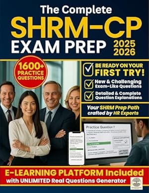 "The Complete SHRM-CP Exam Prep 2025-2026" is an expert-reviewed, fast-track guide fully aligned with the latest SHRM Body of Applied Skills and Knowledge (BASK), created to equip you with the knowledge, skills, and confidence you need -- supported by advanced tools that make your study efficient and effective.